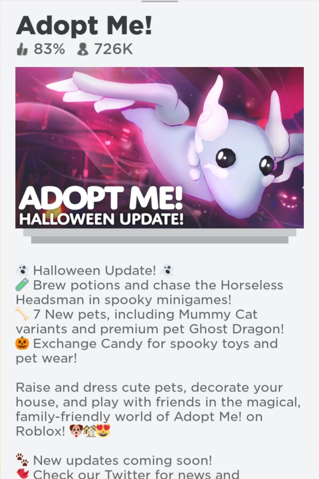 Watch popular content from the following creators. All Adoptme Halloween 2021 pets toys and petwear playadoptme robloxadoptme. The Halloween White Ghost Dragon is a limited legendary pet from the Halloween Event 2021 in Adopt Me.